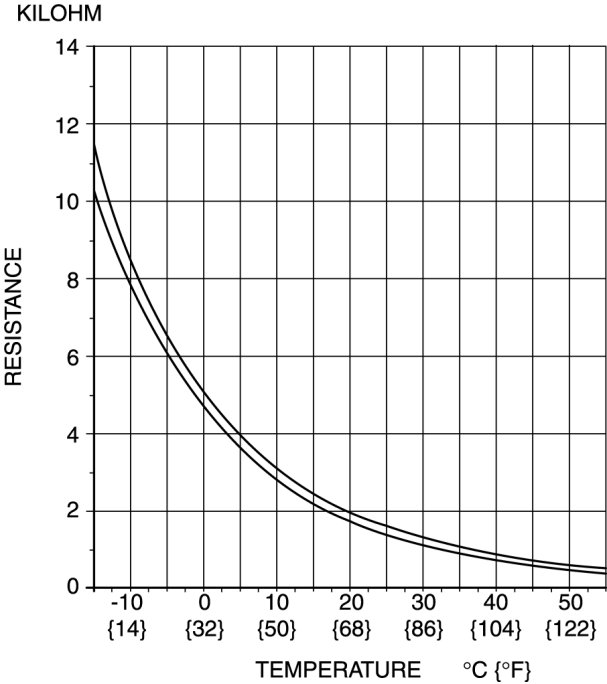 - If the resistance is not as shown in the graph, replace the front evaporator temperature sensor.