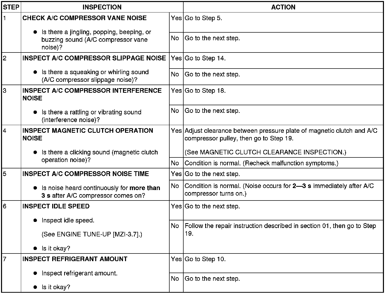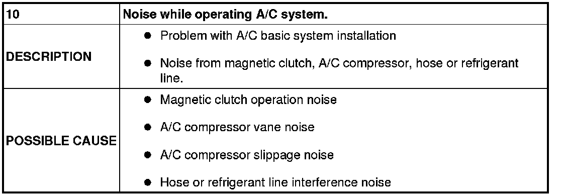 NO.10 NOISE WHILE OPERATING A/C SYSTEM.