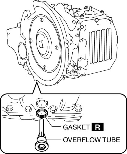 2. Remove the overflow tube, and the gasket, and drain the ATF.