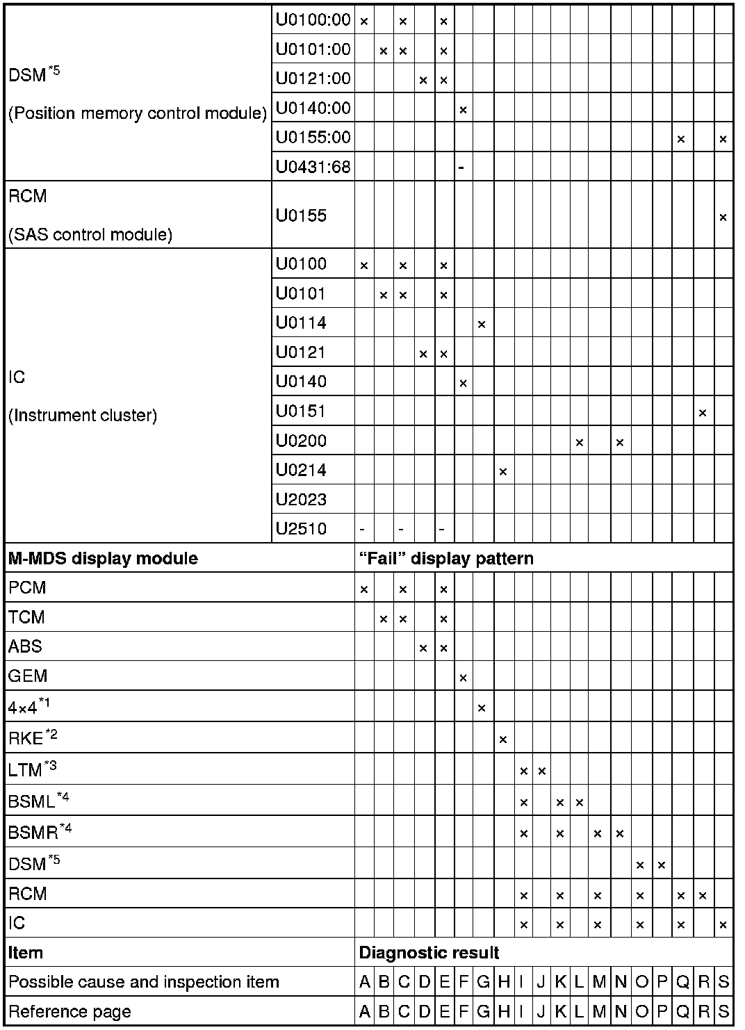 3. Refer to the matching tandem diagnostic results (A to S) and inspect the possible cause and inspection item.