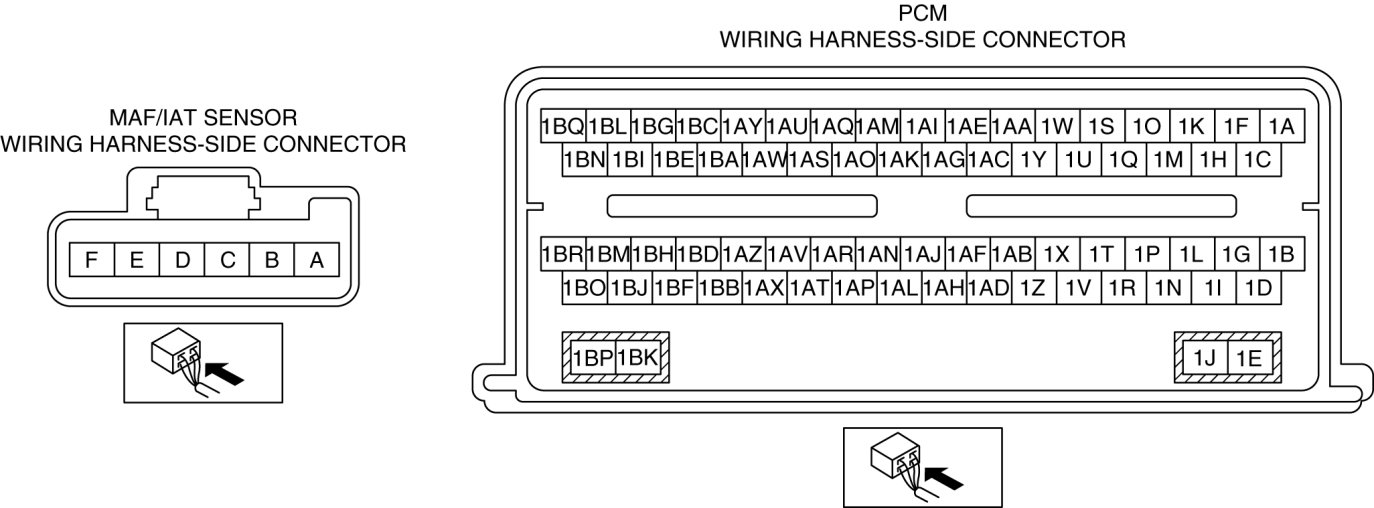 - MAF/IAT sensor terminal F and PCM terminal 1P