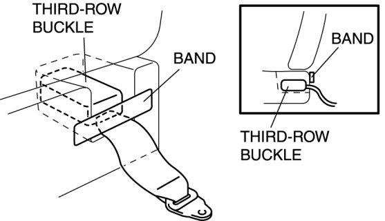1. Bind the third-row seat belt buckles in a band as shown in the figure.