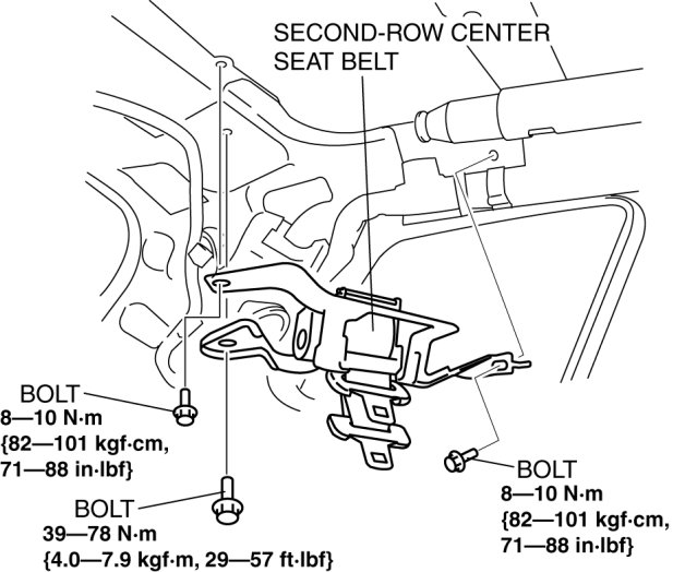 SECOND-ROW CENTER SEAT BELT REMOVAL/INSTALLATION