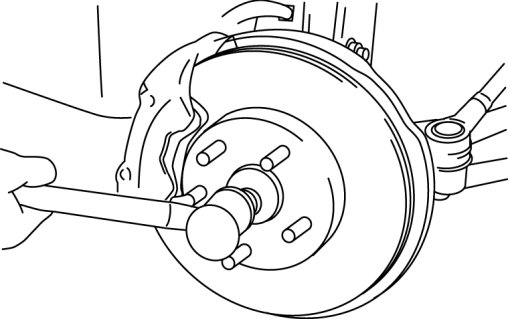 5. Tap the nut with a copper hammer to loosen the drive shaft from the front wheel hub.