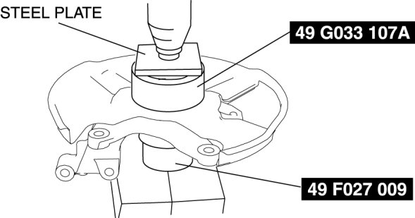 1. Install the new wheel bearing using the SSTs.