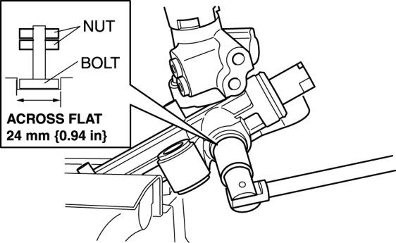 1. Install two nuts to the bolt across a flat 24 mm {0.94 in} and tighten them using a wrench.
