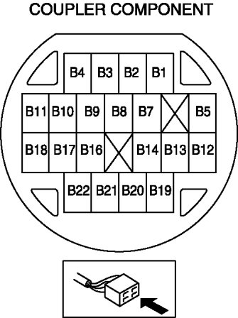 5. Measure the continuity between coupler component terminals B12 and B13.