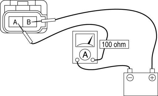 1. Connect the input/turbine speed sensor terminal 2 to the battery positive terminal, connect the battery negative terminal to input/turbine speed sensor terminal 1 through an ammeter set to a resistance of 100 ohm.