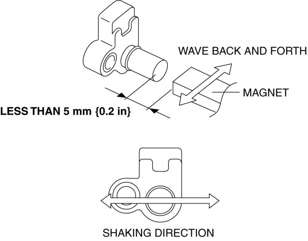 2. Measure the current while waving a magnet back and forth over the top of the input/turbine speed sensor (less than 5 mm {0.2 in}).