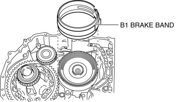 37. Install the B1 brake band to the transaxle case.