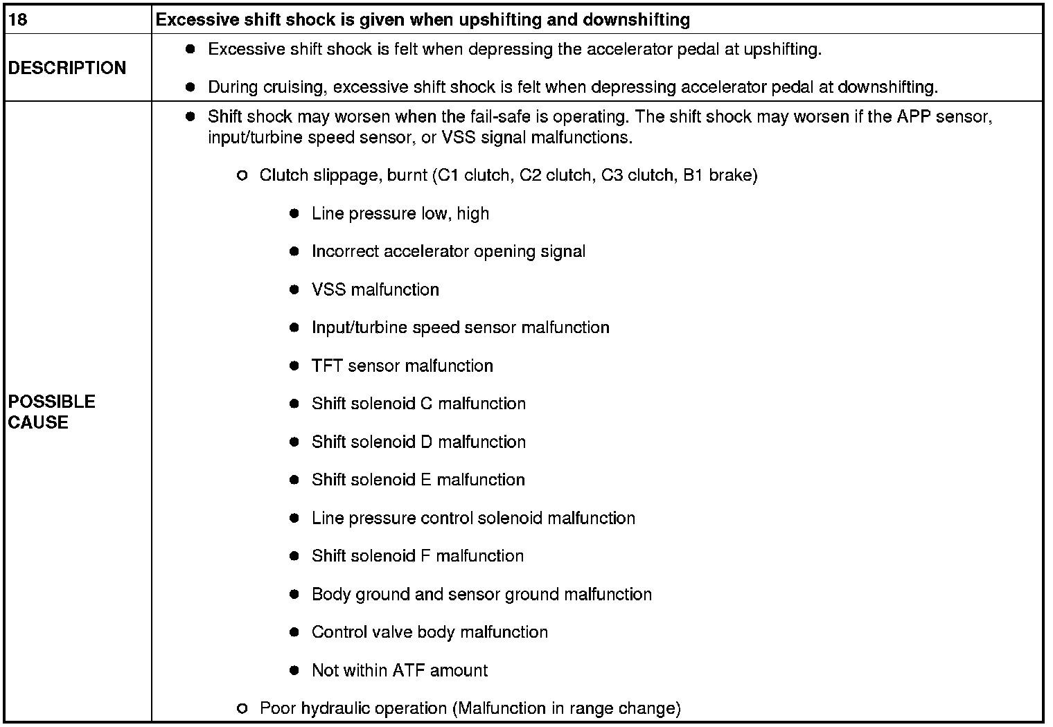 No. 18 Excessive Shift Shock Is Given When Upshifting And Downshifting