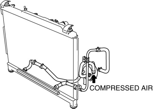 4. Add new ATF from the oil cooler hose outlet and blow 491-882 kPa {5.01-8.99 kgf/cm2, 71.3-127.0 psi} of compressed air to flush. (Repeat 2 or 3 times)