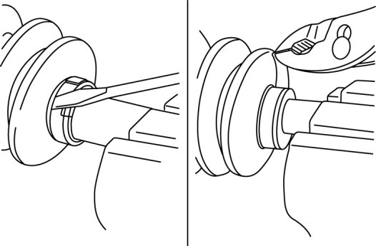 1. Fold the band in the direction opposite to the forward revolving direction of the drive shaft and use pliers to pull it tight.