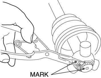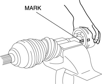 1. Align the marks and install the tripod joint using a bar and a hammer.