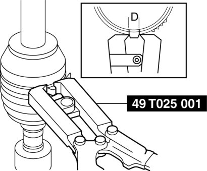 2. Crimp the wheel side small boot band using the SST. Verify that clearance D is within the specification.