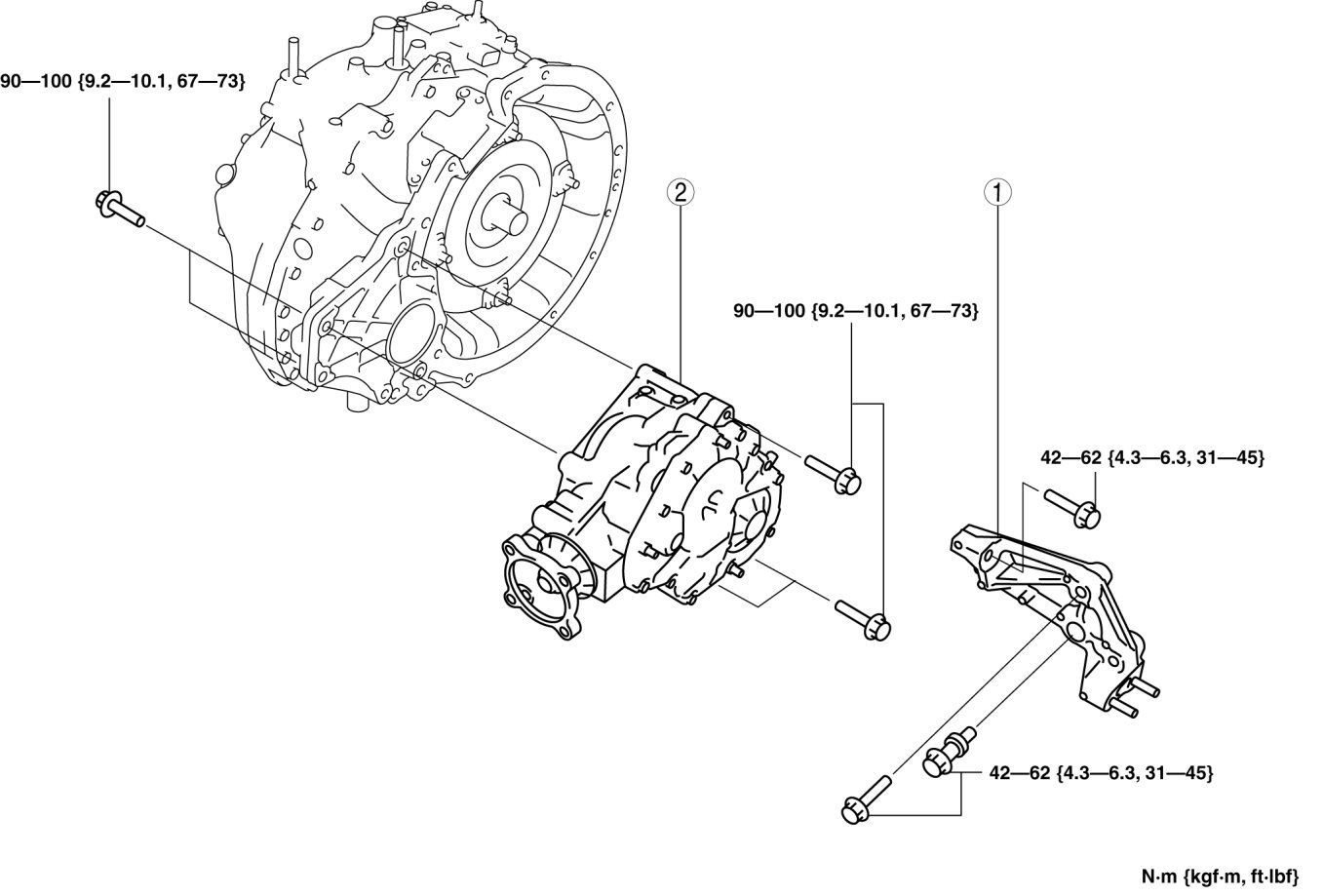 - Bolt A, B, C: 42-62 Nm {4.3-6.3 kgf-m, 31-45 ft-lbf}