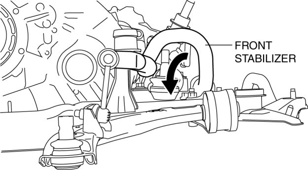1. Disconnect the front stabilizer control link, and rotate the stabilizer to the front to secure a space from the side.