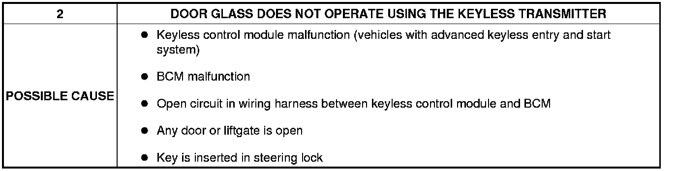 No. 2 Door Glass Does Not Operate Using The Keyless Transmitter