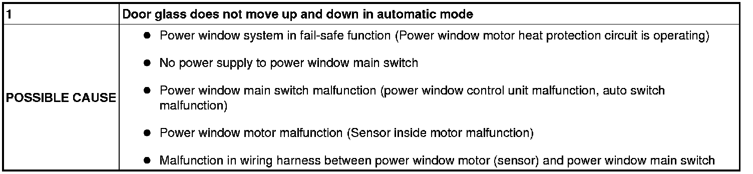 No.1 DOOR GLASS DOES NOT MOVE UP AND DOWN IN AUTOMATIC MODE [POWER WINDOW SYSTEMS (AUTO-OPEN/CLOSE FUNCTION)]