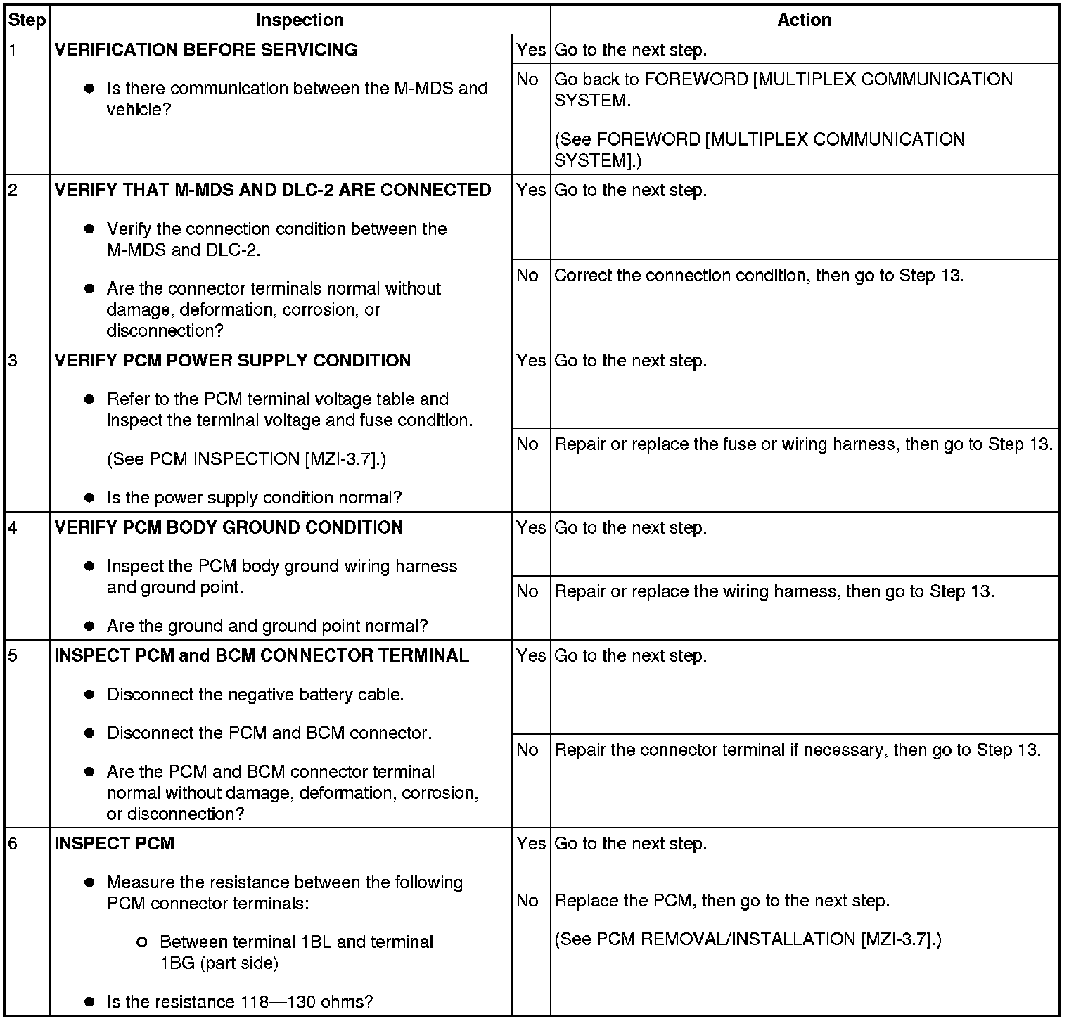 - Possible causes of communication errors between the M-MDS and vehicle include communication circuit interruption due to an open circuit in the CAN communication wiring harness, or poor contact of connector terminals, or a BUS OFF condition due to a short circuit in the CAN communication wiring harness.