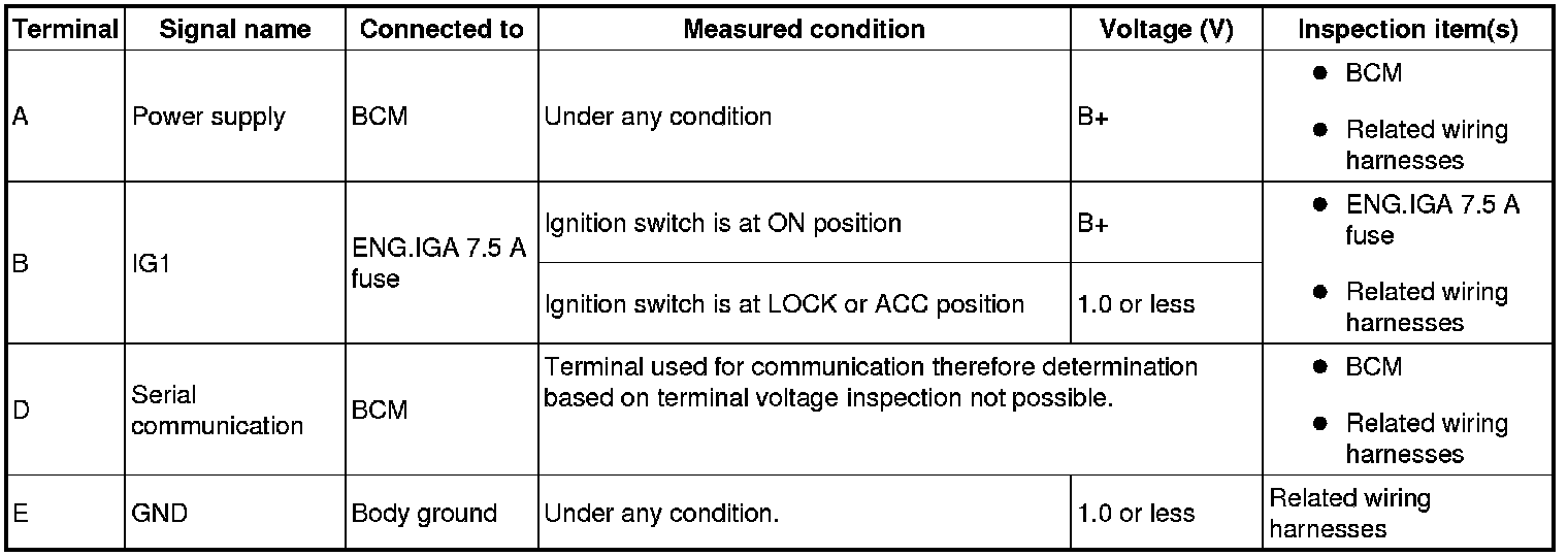 Terminal Voltage Table (Reference)