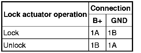 1. Apply battery positive voltage and connect ground to the corresponding front door lock actuator terminals, and inspect the front door lock actuator operation.