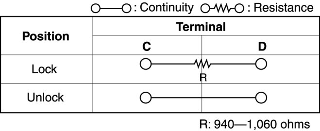 Inspect for continuity between the door lock switch terminals using an ohmmeter.