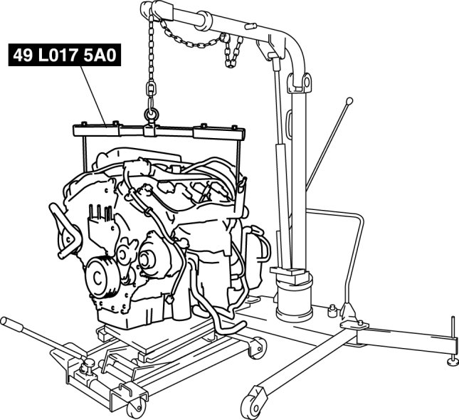 - Protect and stabilize the lowered engine and transaxle component with crossties to prevent injury or damage due to roll over.