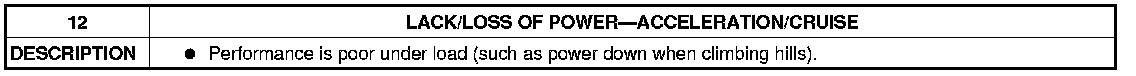 No. 12 Lack/Loss Of Power-Acceleration/Cruise