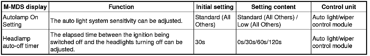 - If the mode is set to "Low (All Others)", the illumination level for illuminating the TNS and headlights decreases. Therefore, the TNS and headlights illuminate when the ambient light is lower than when the level is set to "Standard (All Others)"
