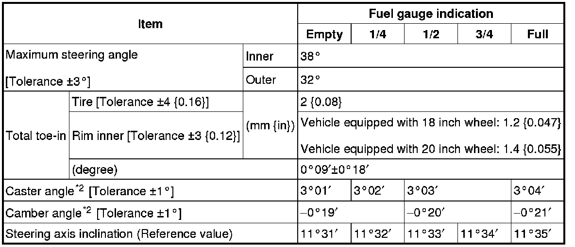 Front wheel alignment [AWD] (Unloaded)*1