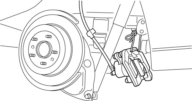 - Performing the following procedures without first removing the ABS wheel-speed sensor may possibly cause an open circuit in the wiring harness if it is pulled by mistake. Before performing the following procedures, disconnect the ABS wheel-speed sensor connector (body side) and fix the wiring harness to an appropriate place where it will not be pulled by mistake while servicing the vehicle.