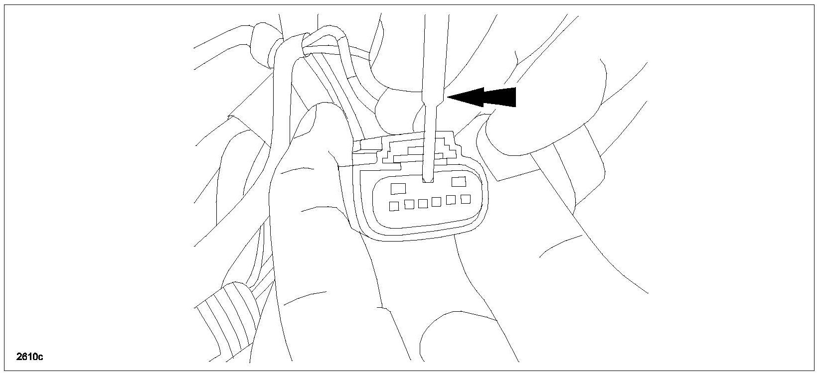 9. Remove all six (6) terminals from the original connector using an appropriate terminal tool (A) as shown.