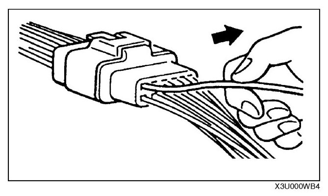- Inspect the terminals of waterproof connectors from the connector side since they cannot be accessed from the wiring harness side.