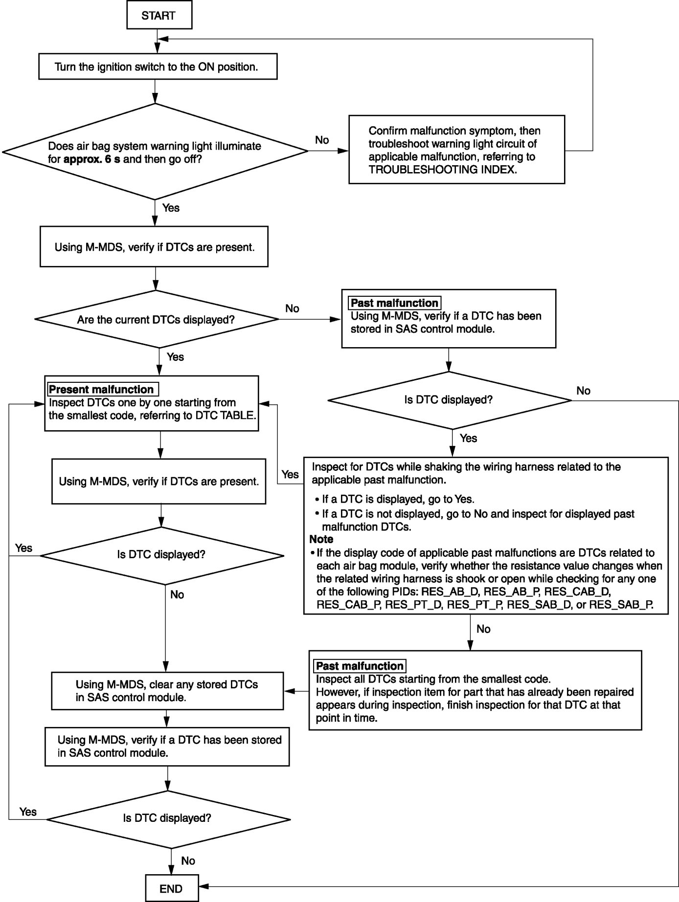 - When DTCs of the present malfunction are no longer output after present or past malfunctions or both have been repaired, be sure to perform past malfunction display cancellation to prevent repair of malfunctions that have already been repaired.