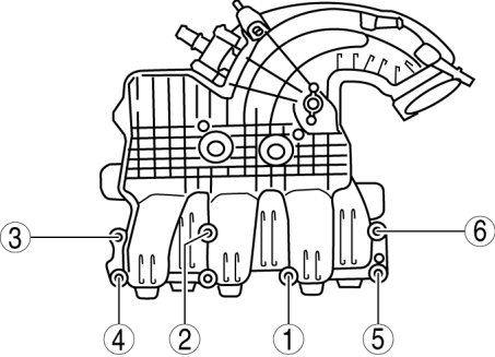 Intake ManifoldTighten the intake manifold installation bolts in the order shown.
