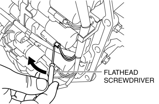 - Pry the flathead screwdriver in the direction of the arrow and disconnect the connector.