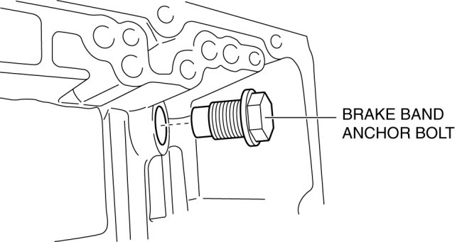 31. Install the brake band anchor bolt to the transaxle case.