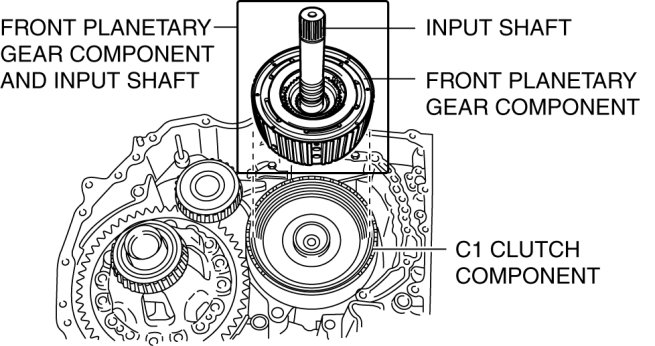 - Hold the C1 clutch component and install the front planetary gear component while holding the input shaft.