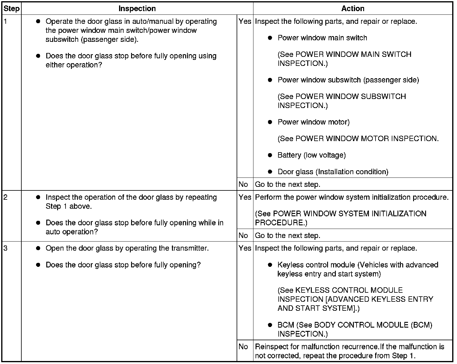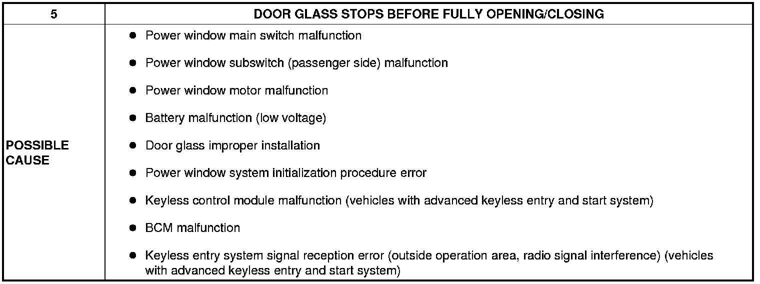 No.5 DOOR GLASS STOPS BEFORE FULLY OPENING [POWER WINDOW SYSTEM (EXTERIOR OPEN FUNCTION)]