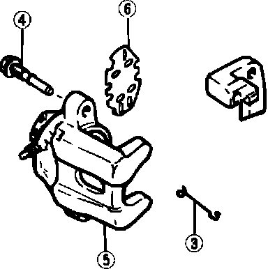 3. Remove return spring (3), Fig. 3, slide pin (4), caliper assembly (5) and shim (6).