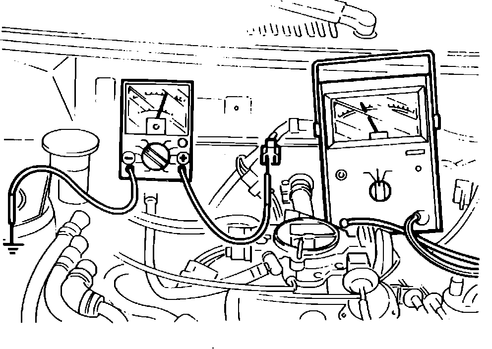 1. Take a reading of the voltmeter during deceleration. The reading should be, above 2,000 rpm approx. 12V, and below 2,000 rpm below 1.5V.