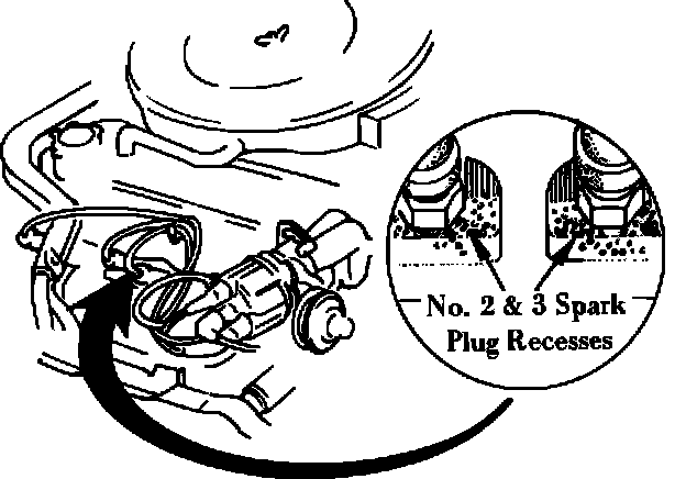 out the area around each spark plug to remove any foreign material. Pay special attention to spark plugs No.. 2 and No. 3. Because of the shape of the exhaust manifold heat shield, dirt and grit can collect around these two plugs.