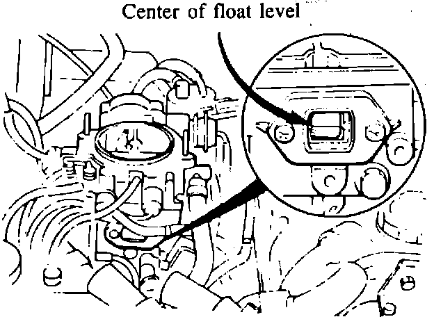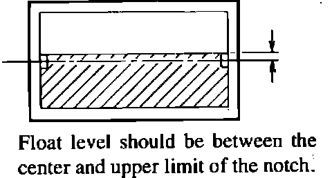 a. The float level MUST BE BETWEEN THE CENTER AND UPPER LIMIT OF THE NOTCH WITH THE ENGINE IDLING. If it is not, it must be adjusted.