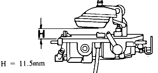 b. To bring the float level to the upper limit it is necessary to adjust clearance (H) to 11.5 mm. Adjust by bending tang which contacts needle valve. Perform this adjustment only with air horn gasket removed.