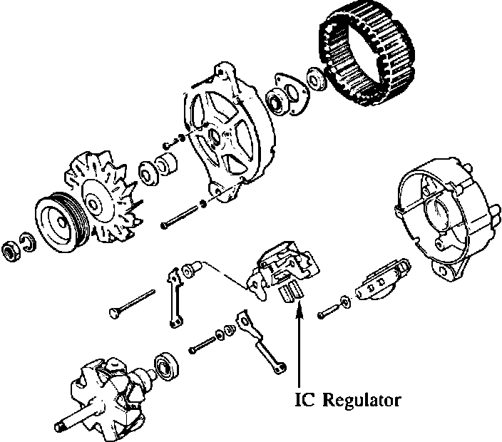 Checking procedure for the built-in IC regulator has been established to pin point the alternator problem. Basically, the alternator should be replaced as a unit through the exchange program. However, in case of the shortage of refurbished alternator, you may replace the IC regulator to minimize inconvenience of customers.