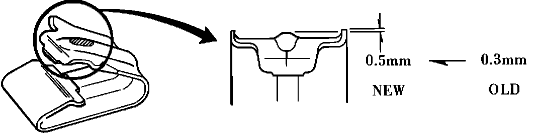 The configuration of the retaining tab on the Wheel Cap has been modified as shown below to obtain a tighter fit since the production date of March 22, 1983.