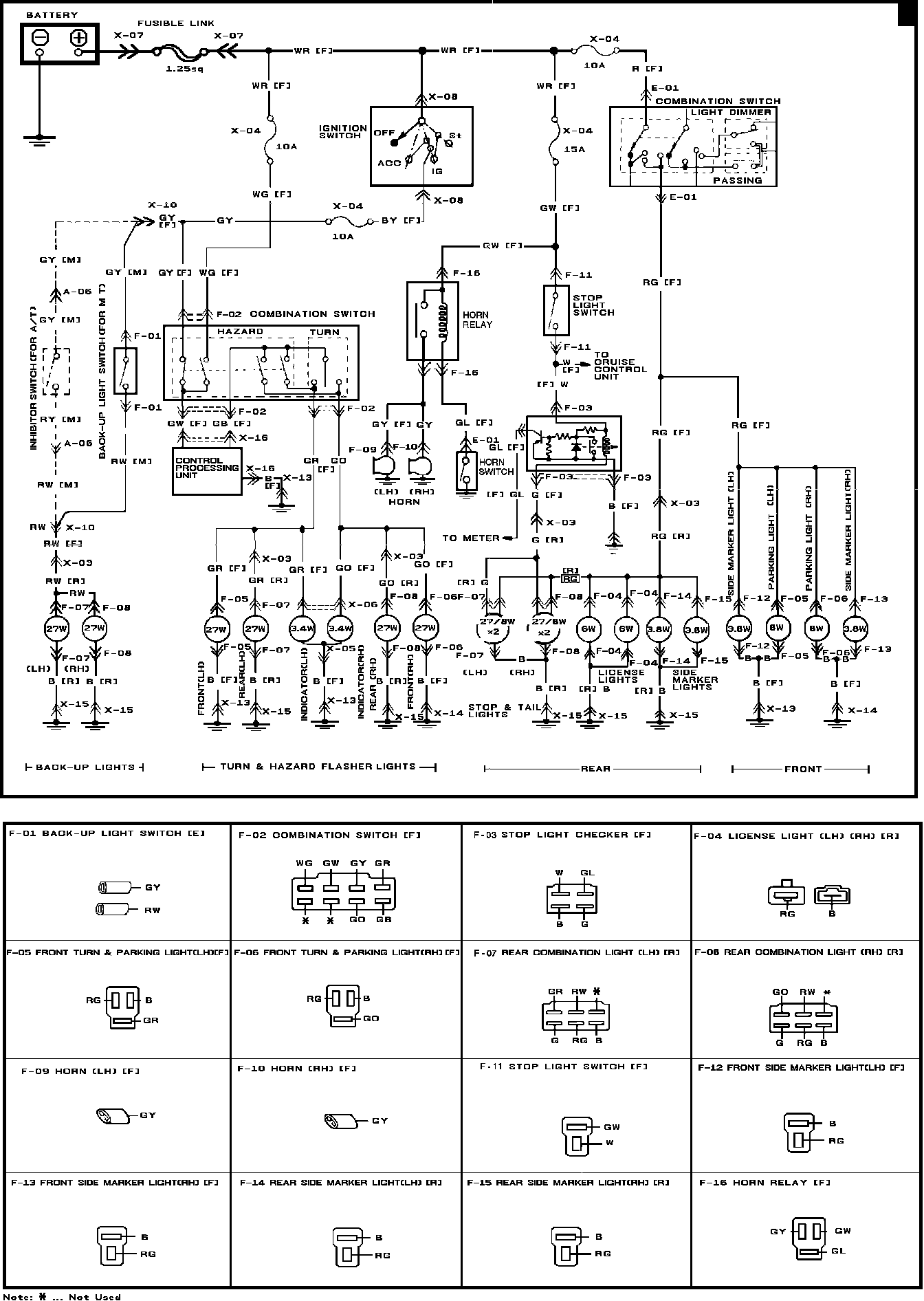 Fig. 24 Back-Up, Front Parking, Hazard Flasher, License, Side Marker, Stop, Tail & Turn Signal Lights & Horn Wiring Circuit: