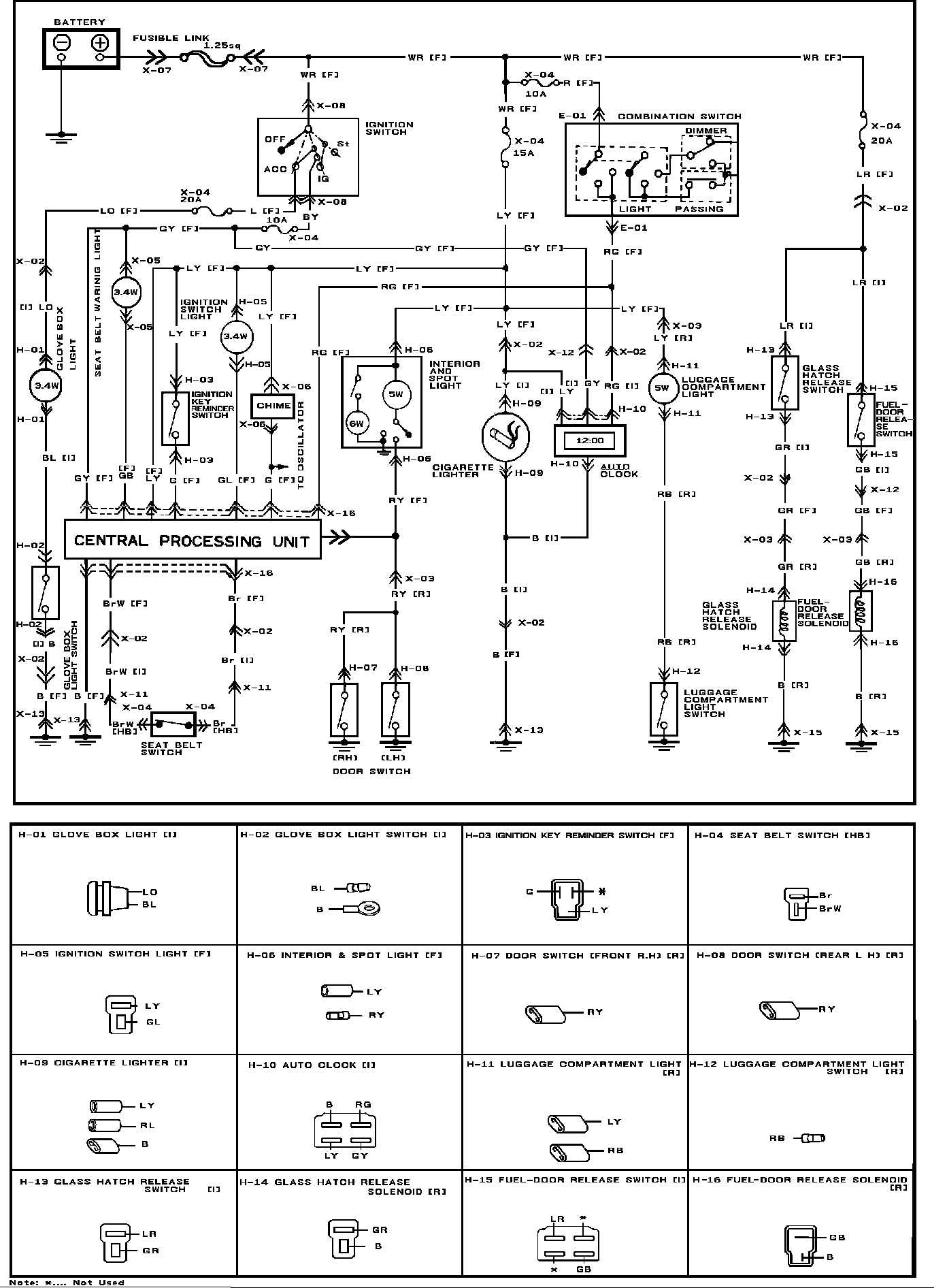 Fig. 26 Interior Lights, Hatch & Fuel Door Release, Lighter, Clock & Warning Chimes: