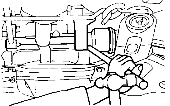 24. Insert suitable lever between driveshaft and transaxle and uncouple driveshaft end. Take care not to damage transaxle oil seal.